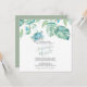 Diese viereckige Probe-Dinner-Einladung zeigt Ihr Set in einer stilvollen handgeschriebenen Schrift-Typografie mit Veranstaltungsdetails in einem klassischen, karkohlegrauen Serif-Schriftart auf einem knusprigen, weißen Hintergrund mit einem Top-Rand meiner ursprünglichen Aquarellschildkröte und tropischen Monstera-Palmen-Blätter in Blues, Grüntöne und Türkis. Die Einladungskarte kehrt zu einer Gratis-tropischen Salbei-Grün-Farbe zurück. Eine botanische und dennoch elegante Wahl für lässige Hochzeiten am Strand und Abendessen an der Probe. Um meine gesamte Hochzeitssaison zu sehen, besuchen Sie DoTellABelle auf Zazzle.