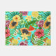 Tropische Mischfrüchte, Blume und Blätter auf blau Fußmatte
