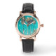 Eine Uhr mit einem schönen Foto. Große Palmen mit langen schmalen Stämmen vor einem schönen grünen Himmel. Retro-Farbschema. Entspannen und kühlen.