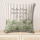 Einweihung unseres tropischen Palmen Bäume Beige Streifen Beach House wirbelkissen. Mit Aquarellbildern, tropische Pflanze mit beigen Streifen als Hintergrund. Geeignet für Mieten Urlaub Strand Haus, Küste Hütte, oder sogar Schiff und Schiff.