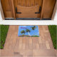 Eine Fußmatte mit einer Fotografie der Palmen und der rosa Bouganvilla-Blumen, mit dem Wort Willkommen. Sie können das Wort Willkommen löschen und ändern. Sie können das Fotografiebild bis eins von Ihren Selbst auch ändern, wenn Sie möchten. Palmen wurden in Südflorida fotografiert. --- Diese Fotografie ist durch mich, der Fotograf urheberrechtlich geschützt.