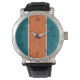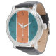 Diese Uhr verbindet Farbe und Stil mit schwarzen Zahlen auf einem aqua-, orangen und weiß gestreiften Hintergrund. Immer wenn du diese Armbanduhr trägst, Set du den Mode-Standard.