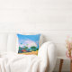 Dieses 16" Kopfkissen zeigt ein Originalfoto von ZoeSPEAK eines Regenbogens über Cocoa Beach, Florida. Eine Staatsflagge fliegt in den oberen links über den Palmen und anderen tropischen Grüntönen. Die helle Sonne färbt die Straße entlang des Strandes und die dort geparkten Autos. Ein Regenbogen bildet sich über den blauen Himmel und tönt die Wolken rosa. Der Himmel verdunkelt sich auf der rechten Seite, während sich der Regenwald nähert.