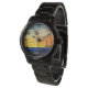 Uhr, Vintage Männeruhr mit schwarzem Lederarmband