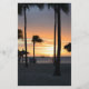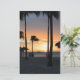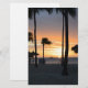 Hübscher tropischer Sonnenuntergang mit Sonnenuntergang am Horizont und schattenspendenden Palmen.