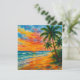 Dieses lebendige Aquarellbild fasziniert die ruhige Schönheit eines tropischen Strandes bei Sonnenuntergang. Brillante Orange-, Rot- und Gelbtöne versetzen den Himmel und fügen sich nahtlos in die tiefe Blues der Meereswellen ein. Große Palmen umrahmen den Vordergrund, mit subtilen Schatten über dem warmen Sandstrand. Die Szene ruft ein Gefühl von Ruhe, Entspannung und Naturwunder hervor, was sie zu einer perfekten Darstellung des Paradieses macht.