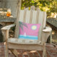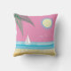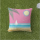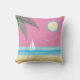 Dieses lustige Outdoor-Kissen ist mit einer tropischen Strandszene mit Seestern, Möwen, einem Segelboot und Palmen-Blätter auf einem rosa Himmelshintergrund geschmückt, was es zu einem idealen Accessoire im Sommer für das Strandhaus, Schwimmbad, Hütte, Patio, Deck oder Poolbereich macht.