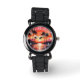 Die Watercolor Tropical Beach Sunset Palm Trees Watches verfügt über einen tropischen Sonnenuntergang mit Palmen Silhouette im Wasser. Erstellt von Evco Studio www.zazzle.com/store/evcostudio