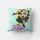 Tropisches Vogel-Kissen. Vintage Art färbt girly Throwkissen mit völlig customizabe Neon Text bunte Blumen "tropischen Vogels" und einen toucan Vogel. Ein Blumen-Entwurfsgeschenk der schönen stilvollen tropischen Vögel Blumen!