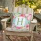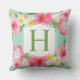 Das Design der Kissen im tropischen Stil zeichnet sich durch ein lebendiges, rosa, gelbes und weißes Hibiskus-Muster aus. Die Blume sind in grün, monogram, blattgrün und Aquaafoam blau/grün gehalten.
