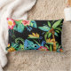 Dieses bunte tropische Throwkissen ist ein perfektes Geschenk für die Person, die Lieben die Tropen! Watercolorbilder des Hibiskus, des exotischen Blätter, des Paradiesvogels, des tropischen Blumen-, der Ananas und der Palmen auf einem schwarzen Hintergrund zieren die Front und die Rückseite. Dieses Kissen kennzeichnet Blues, Grüntöne, Rosa, Orangen, Gelbs und Rottöne.