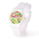 Tropisches Fruchtmuster aus Rot und Gelb Armbanduhr