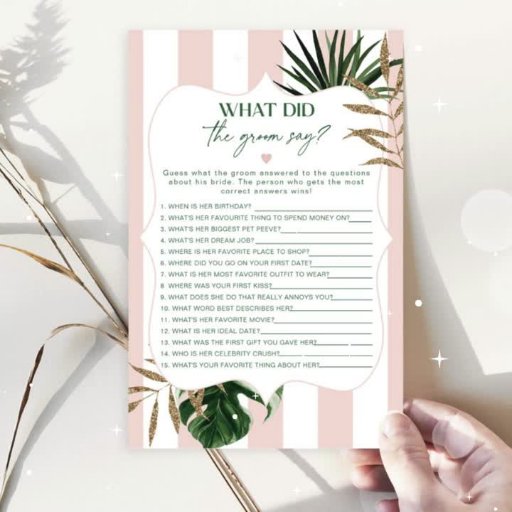 Tropisches Hochzeitsmenü am Strand mit rosa Streif Menükarte