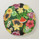 Tropisches Mischobst, Blume und Blätter auf schwar Rundes Kissen