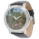 Uhr, Vintage Männeruhr mit schwarzem Lederarmband