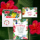 tropisches brautpartyhawaiischsommerluautropische blätterblumenreichhibiskusaquarelltypografierosa blume