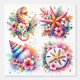 Hübsch rosa, blau und goldfarbener Sand Dollar, Seesterne, Muscheln tropischen ozeanischen Küste Thema Aquarell Art ai art.