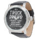 This humorous wall clock playfully acknowledges the realities of married life for a truck driver. Against a black background with a teal rim, it features bold white text: "I'M A TRUCK DRIVER I DO WHAT I WANT WHEN I WANT WHERE I WANT JUST LET ME ASK MY WIFE...". It's a relatable and funny gift for any married trucker with a good sense of humor. The design tool can also be used to add custom text if you want your name or company on this clock. You can customize the color of the frame to any color you desire by going into the design tool.