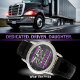 This touching wall clock honors the immense sacrifice a truck driver father makes for his family. Against a black background with a purple rim, it features a semi-truck graphic and the heartfelt text: "TRUCKER'S DAUGHTER My Dad RISKS HIS LIFE FOR STRANGERS JUST IMAGINE WHAT HE'D DO FOR ME". It's a deeply meaningful gift for a daughter to show pride in her trucker dad's dedication. The design tool can also be used to add custom text if you want your name or company on this clock. You can customize the color of the frame to any color you desire by going into the design tool.