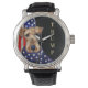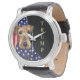 Uhr, Vintage Männeruhr mit schwarzem Lederarmband