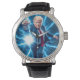 Uhr, Vintage Männeruhr mit schwarzem Lederarmband