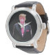 Uhr, Vintage Männeruhr mit schwarzem Lederarmband