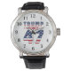 Uhr, Vintage Männeruhr mit schwarzem Lederarmband