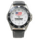 Donald Trump Lederriemen Armbanduhr Behielt Amerika Great USA Fahne. Unterstützen Sie die Kampagne für das republikanische Party. Patriotisches Design mit amerikanischer Flagge. Behalt Amerika groß. Machen Sie Amerika wieder groß.