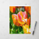 Farbenfrohe violette, lila, rosa Tulpen auf einem Blumenbett. Fast alle Regenbogenfarben sind vorhanden. Helle und positive Blumenszene. Makrofotografie.