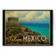 Die Maya-Ruinen von Tulum, Mexiko, auf der Yucatan-Halbinsel werden durch das reizende, grün-blaue Wasser des karibischen Meeres in diesem Vintage-Reise-Bild ergänzt.