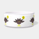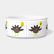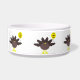 Dieses phantastische Haustierschüssel hat einen lustigen Cartoon eines Truthahns mit großen schwarzen Augen, einen kleinen gelben Schnabel und Schwanz Federn klebrig. Die Füße stehen in entgegengesetzter Richtung, wodurch der Truthahn unbeholfen aussieht. Der Truthahn hält einen gelben Ballon mit einer Meldung im Inneren, in der steht: "Es ist Zeit für den Truthahn". Das ist ein lustiges Erntedank Party Design.