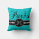 Türkis 00c5cd schwarzes Paris mit Monogramm Kissen