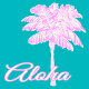 Rosa und weiße Palmen und Aloha-Text auf türkisfarbenem Hintergrund. Ein lustiger sommerlicher tropischer Blick für Ihren Hinterhof in diesem Sommer.