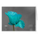 Türkisfarbene Mohnblume vor grauem Hintergrund.