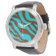 Diese stilvolle Uhr wird von einem hellen türkisfarbenen und dunkelbraunen Zebradruck geschmückt. Das Design stammt aus der Originalkunst.