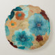 Türkisblau, Rot, Rost, Rost und Bronze Rundes Kissen