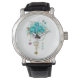 Türkisfarbene Rose mit Tasten Armbanduhr