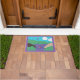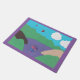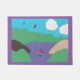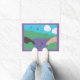 Diese Türmatte ist mit einer Berg- und Seeszene, einschließlich Heißluftballons, gestaltet.