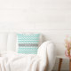 Turq / Aqua, Zickzack, Graue Bezeichnung Monogramm Kissen