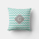 Turq/Aqua Zickzack-Graues Quatrefolienmonogramm Kissen