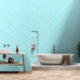 Dieses diamantfarbene Tapete weist ein geometrisches Muster in Türkis auf. Das Hotel liegt sehr zentral, das Kinderzimmer ist sehr gut zu erreichen. Die passende Einrichtung.