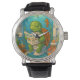 Uhr, Vintage Männeruhr mit schwarzem Lederarmband