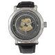 Uhr, Vintage Männeruhr mit schwarzem Lederarmband