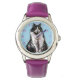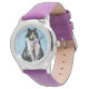 Uhr, Kinderuhr aus Edelstahluhr mit lila Lederarmband