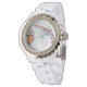 Die sportliche und dennoch elegante Uhr wird von den hübschen Lavendel- und Aquarelltönen der Janet Weight Reed Aquarell "Twilight Dancers" geschmückt. Ein perfektes Accessoire, um Ihrem Outfit einen Farbtupfer hinzuzufügen.