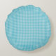 Two images of a round pillow with a blue checkered pattern. The first shows the front, the second the back. Both sides have the same design.