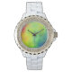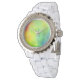 Eine wunderbare Damenuhr mit weißem Armband und grün-weiß-kariertem Ziffernblatt. Trägt sich ganz fabelhaft. Exzellenter Druck, sehr klare Farben. Schönes Design.