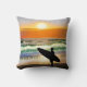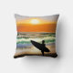 Typ am Strand mit Surfbrett Sonnenuntergang Kissen