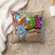 Blonde Typ mit Kopfhörer und einem Musikgraffiti-Hintergrund. Eine Seite des Kissens ist groß und die andere Seite hat ein kleineres Wiederholmuster. Es gibt eine Reihe dieser Drucke mit verschiedenen Zeichen.