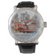 Uhr, Vintage Männeruhr mit schwarzem Lederarmband